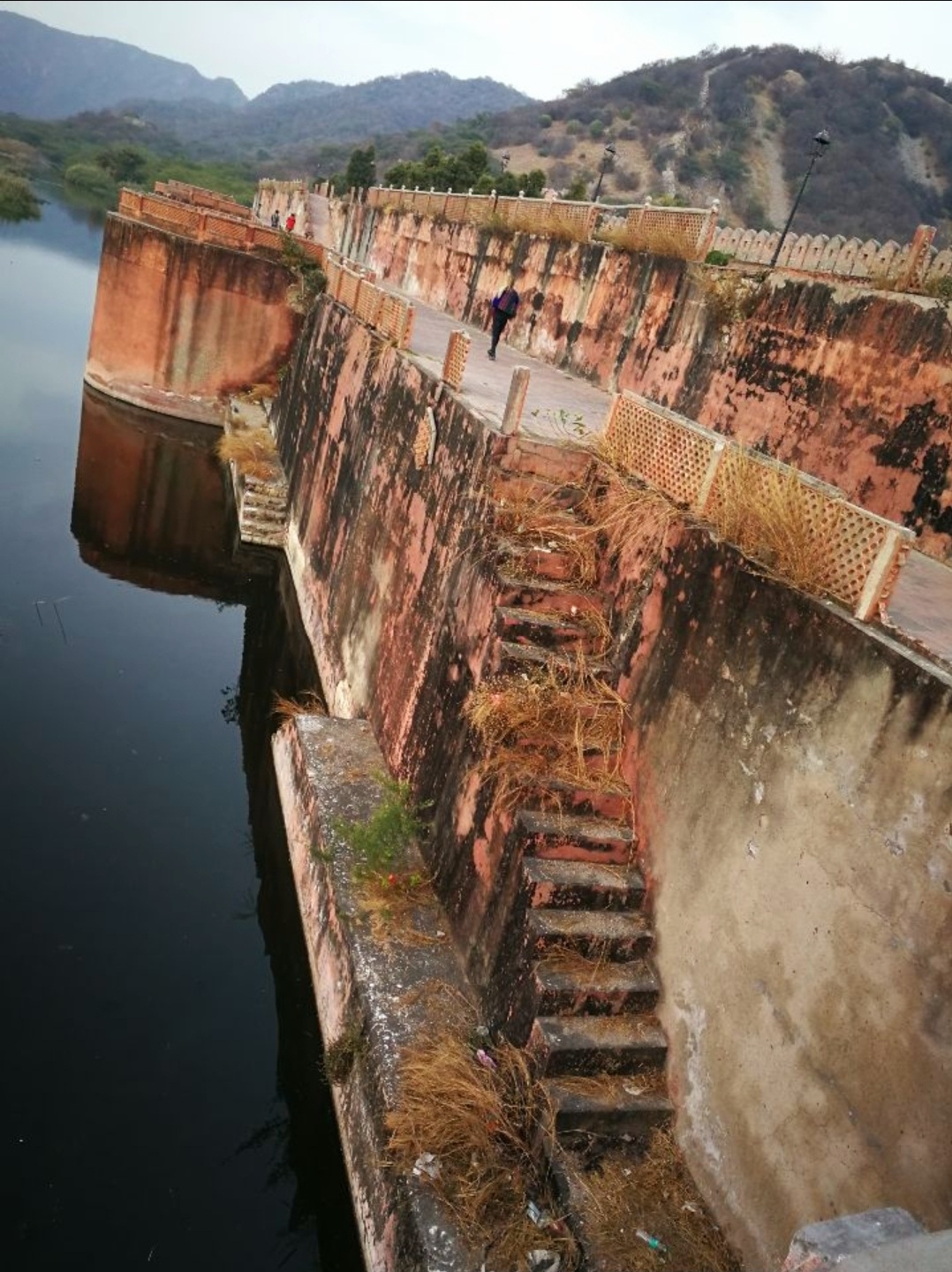 In the 18th century, the king of Amer however decided to build a dam between the two surrounding hills to prevent any flood. Around that time the building was partially covered in water.