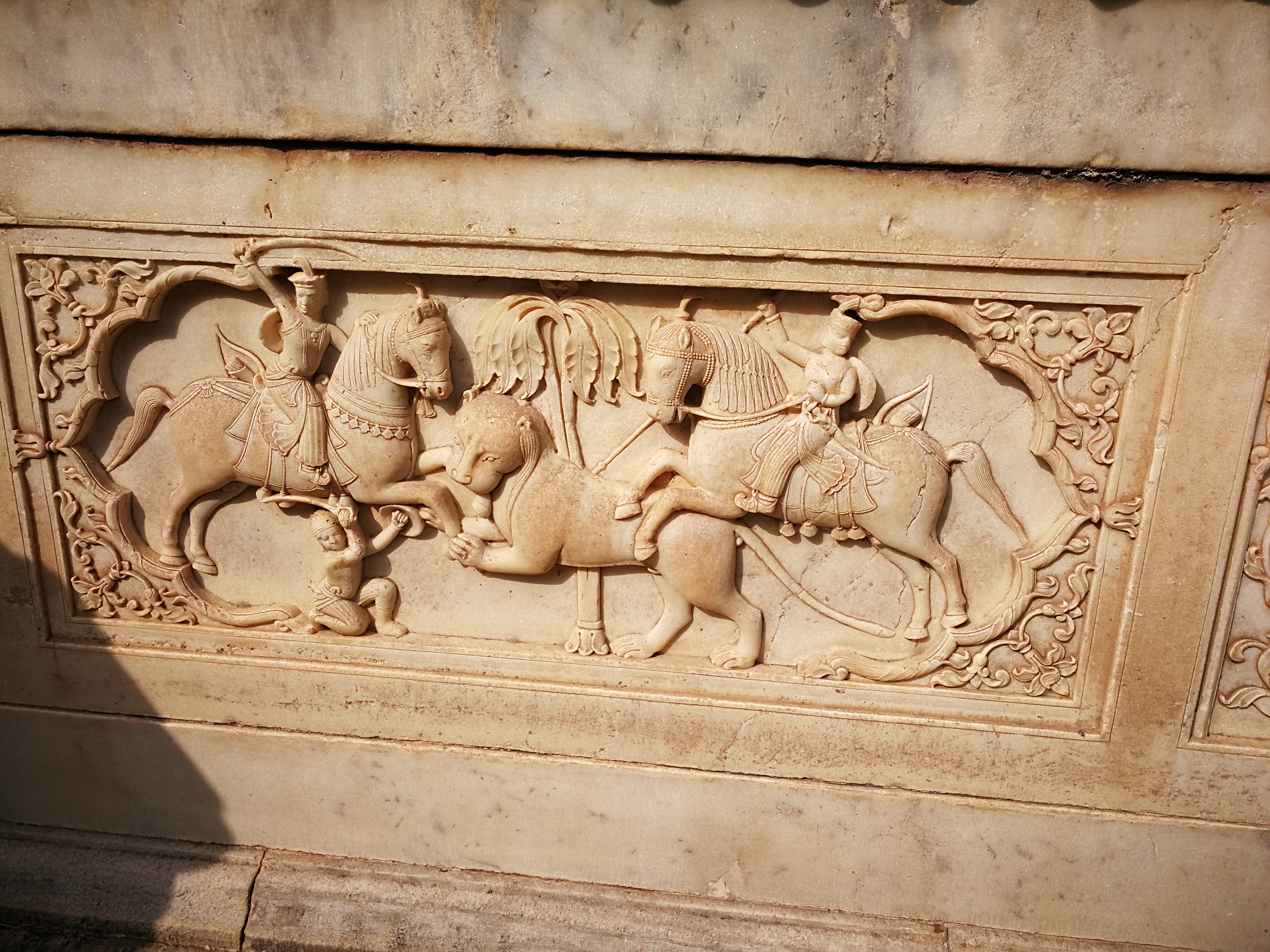 Both marble and sandstone were used as building material and our guide gave us more background information about the detailed and refined carvings of battlefield scenes and nature a.o.