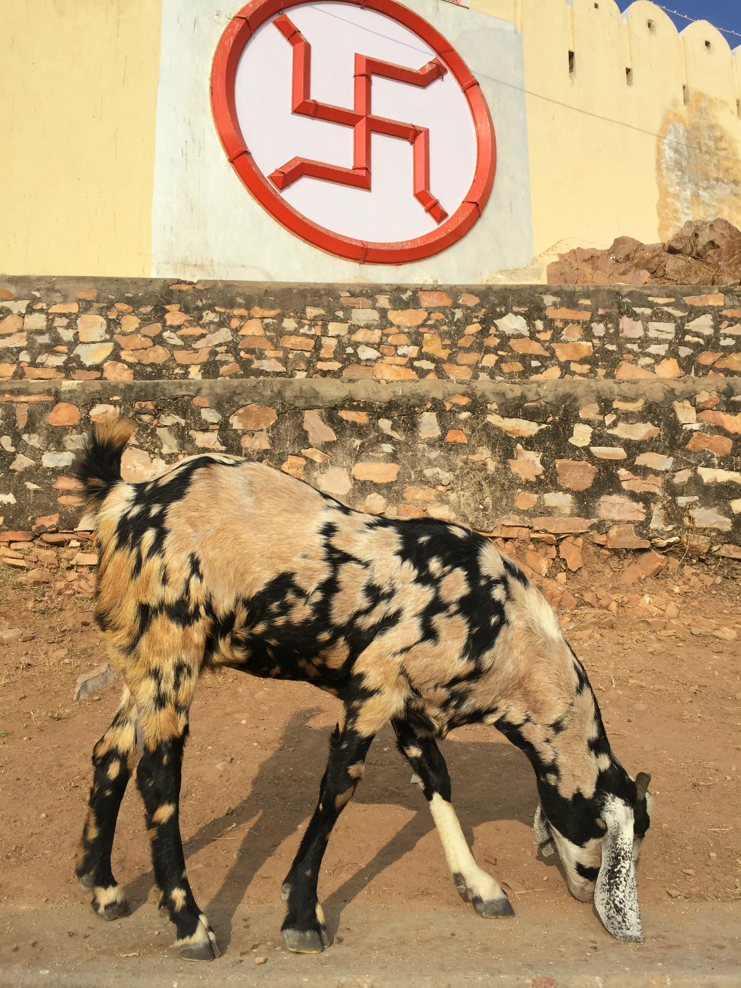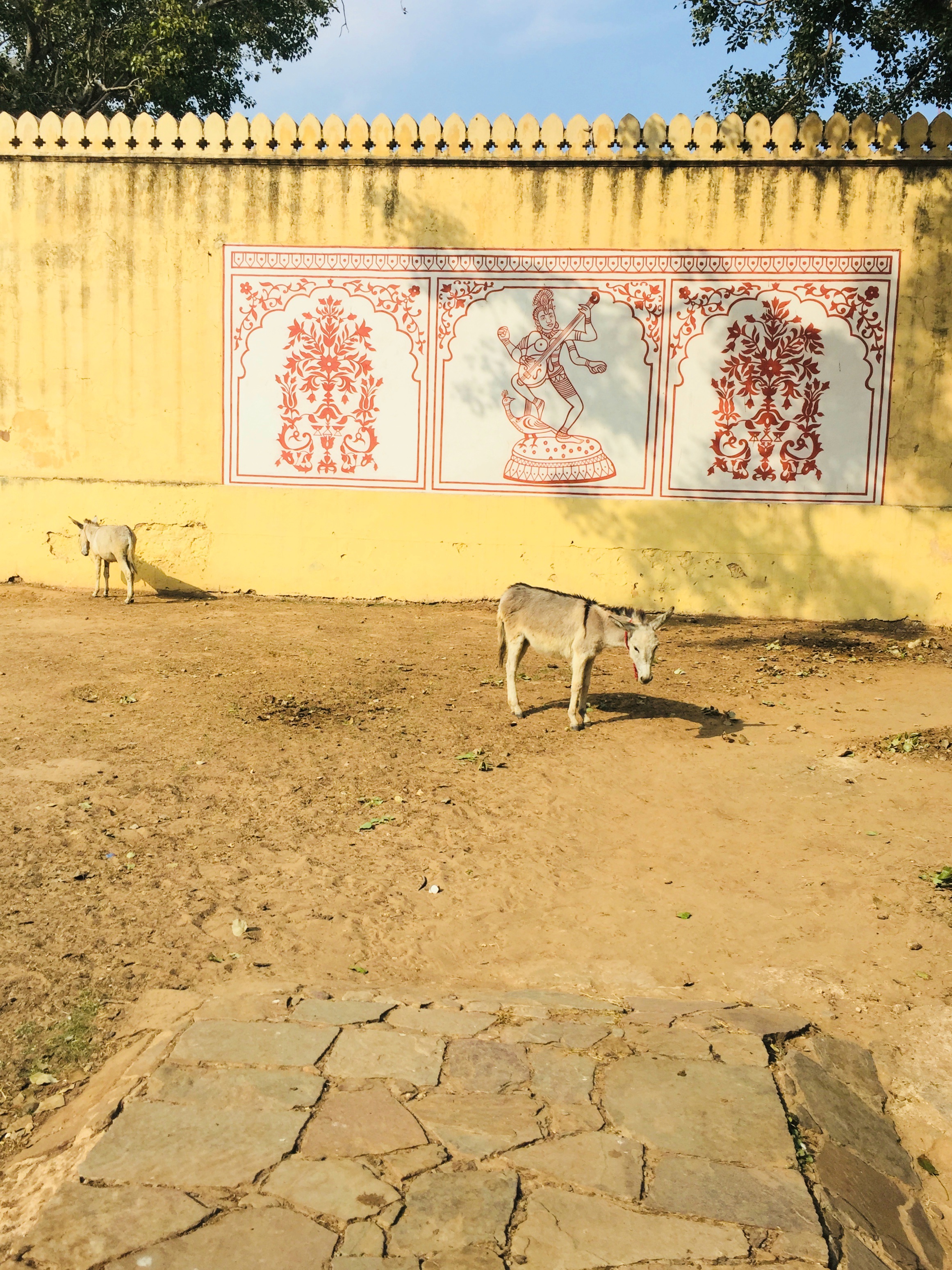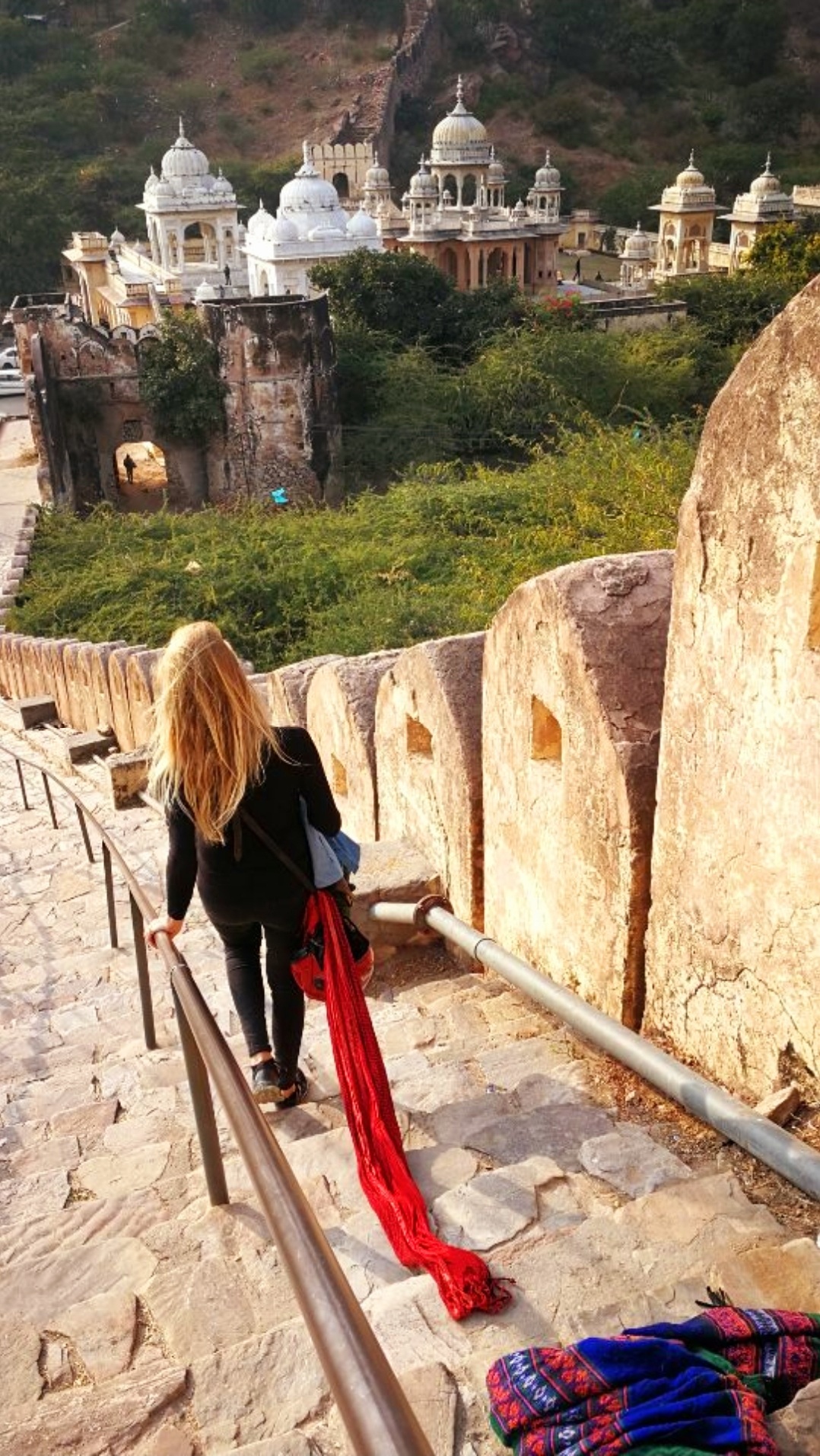 Our next stop is the temple of Lord Ganesh. To reach this 18th-century temple, you have to climb up this big, fortress wall, since the temple is located at the top of the Aravali hills.