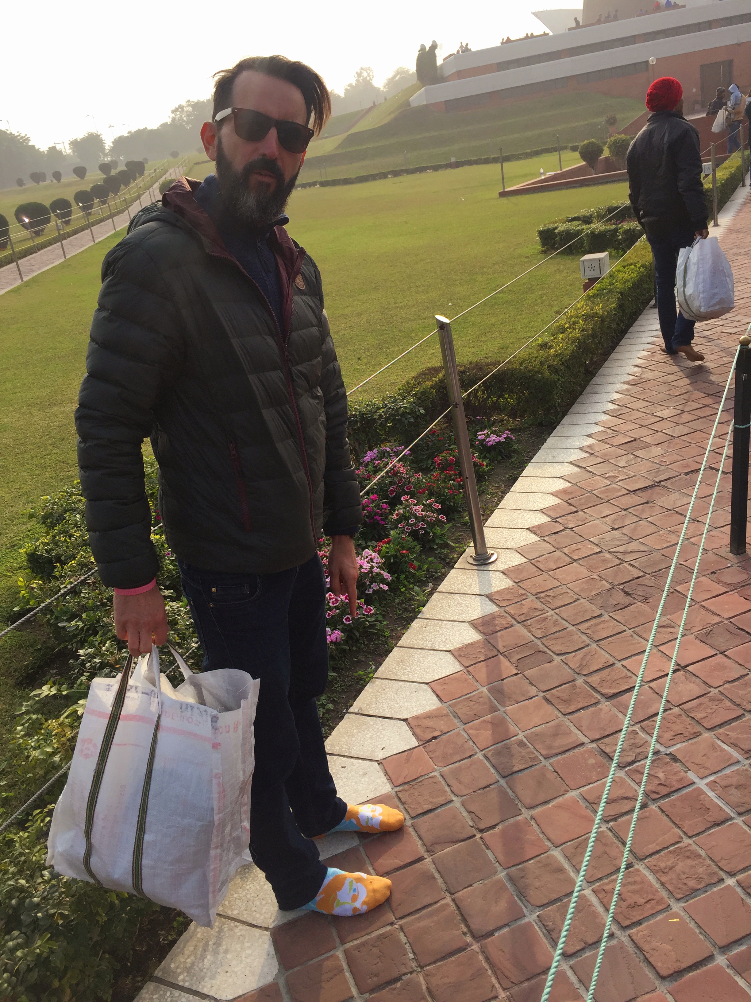With our shoes safely stored in a bag and in socks on our way to the temple