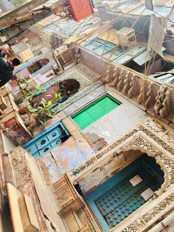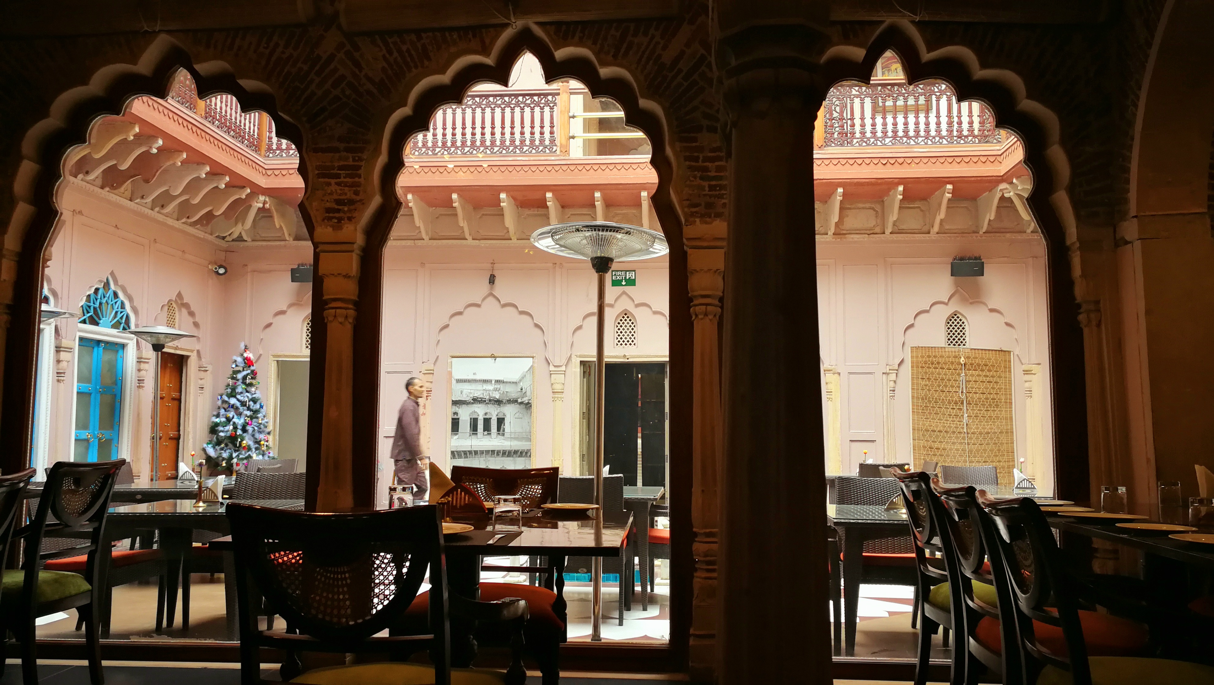 In the area of Old Delhi only a few of the many havelis, the traditional Indian mansions are left and maintained. Through the internet we found this beautiful renovated one, called Haveli Dharampura where you can have dinner, and even sleep.