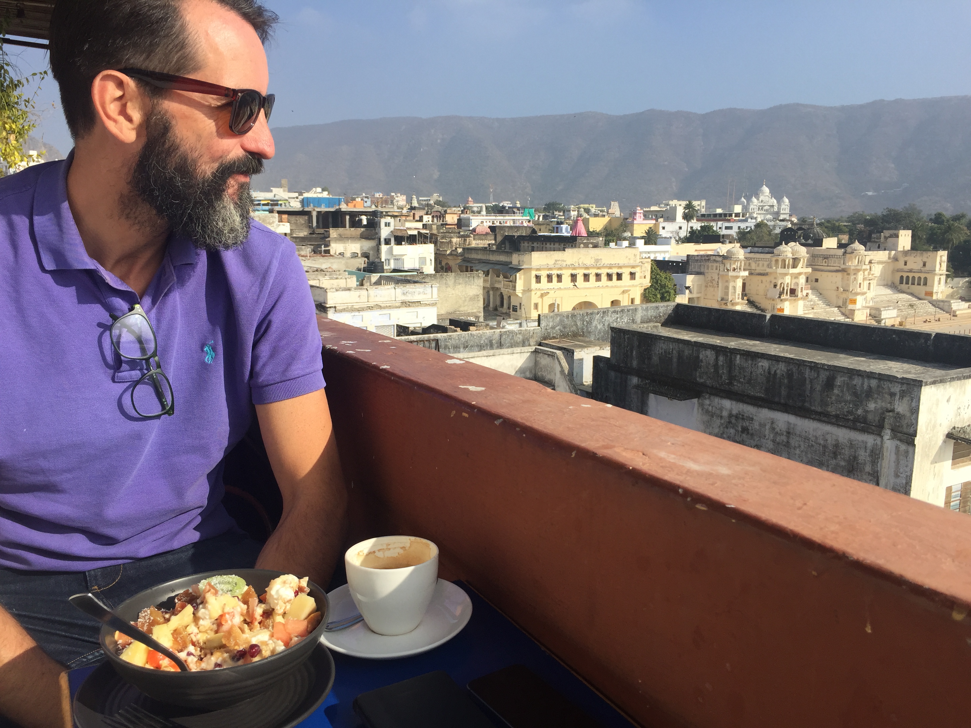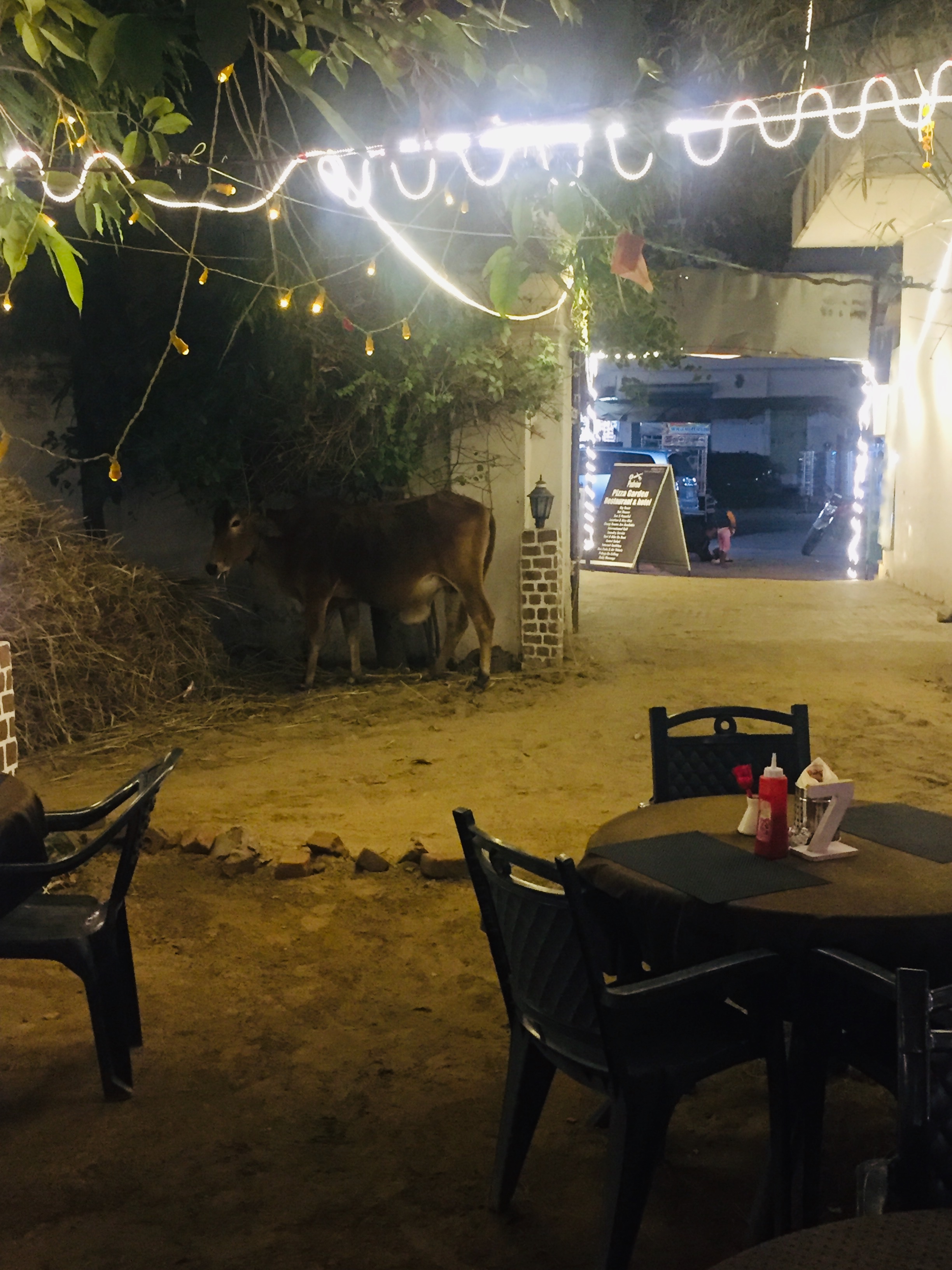 At Raju’s you can choose: sit outside on the terrasse at the front. And enjoy all the lakesite activity – cows, monkeys, street artists. Or you can sit inside, or even in the garden at the back (where you can also enjoy various traditional, Indian concerts).