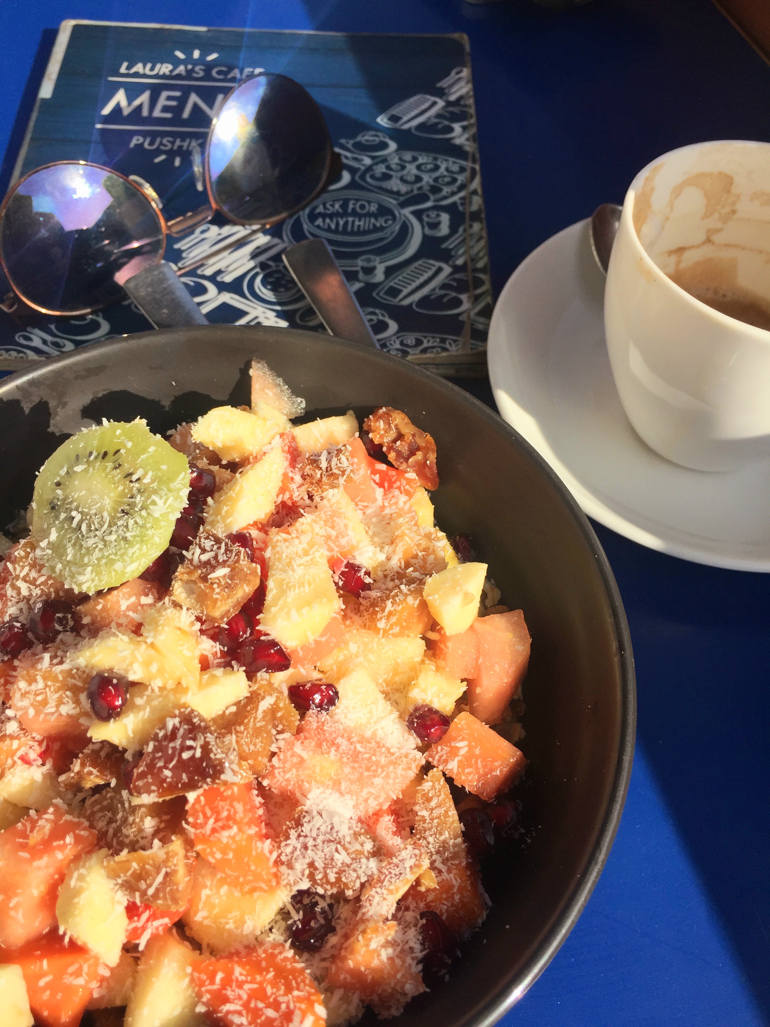 Time for the probably the most healthy spot in Pushkar! Here, all the used products and meals are organic. It’s a bit more hidden inside one of the buildings behind the main street. And especially in summer it’s the ideal place to find some cool.