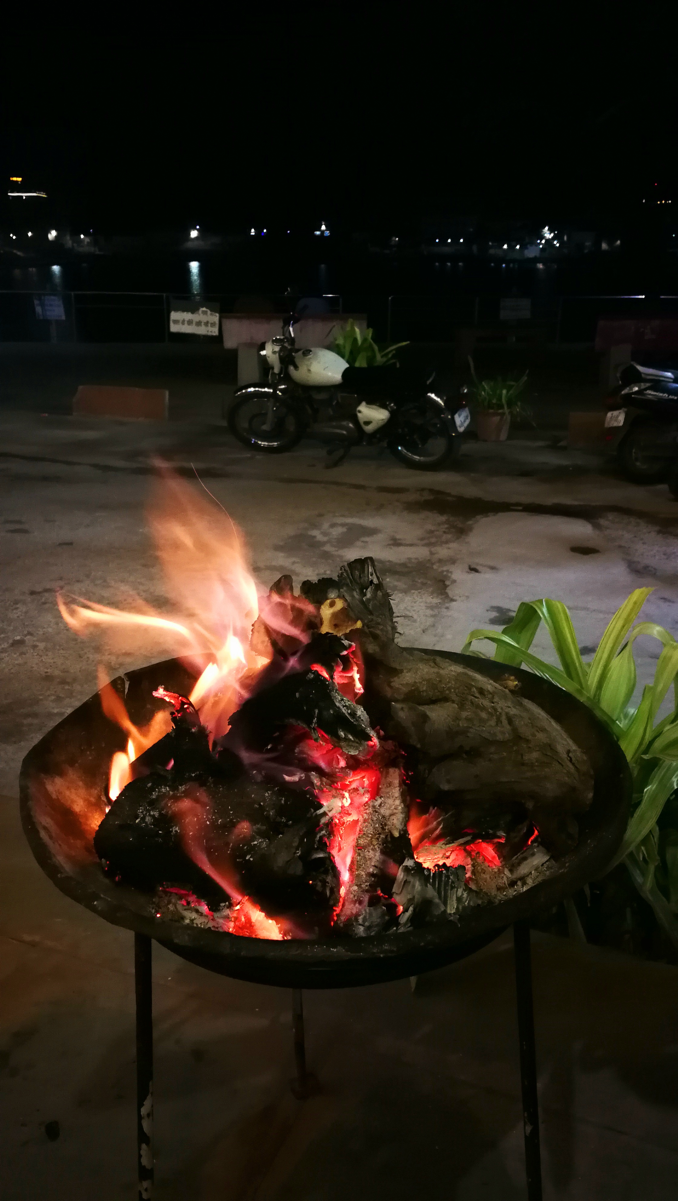 Raju is taking good care of his customers: in case it’s winter and a bit too cold to sit outside, they have these little fire pits (and hot chai and chocolate!) to keep you warm.