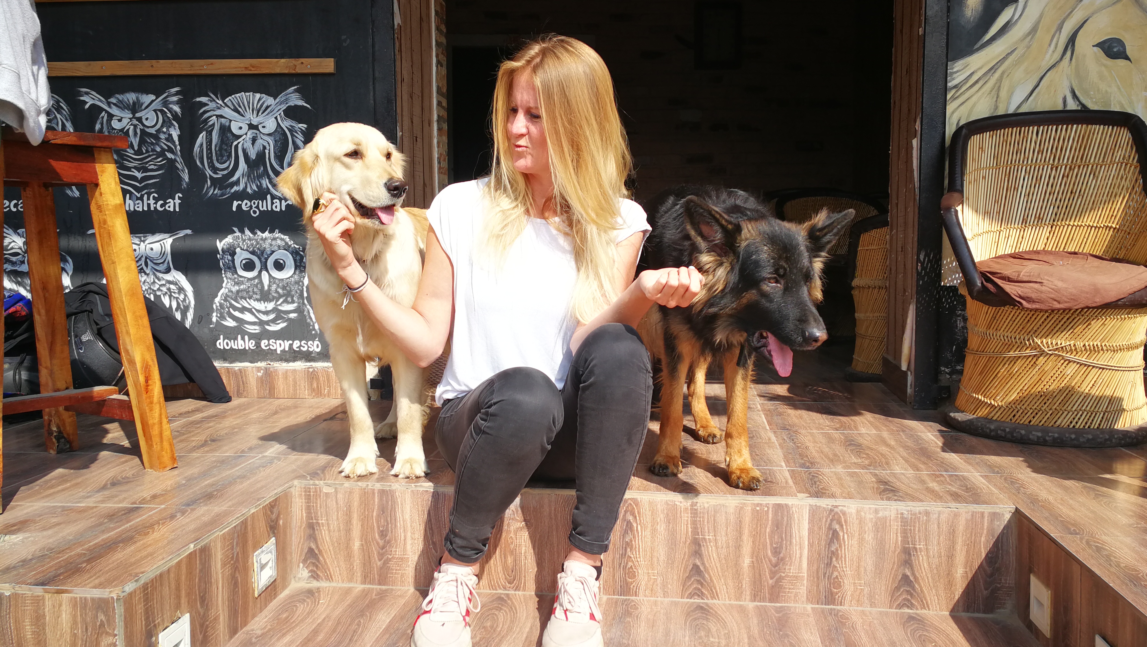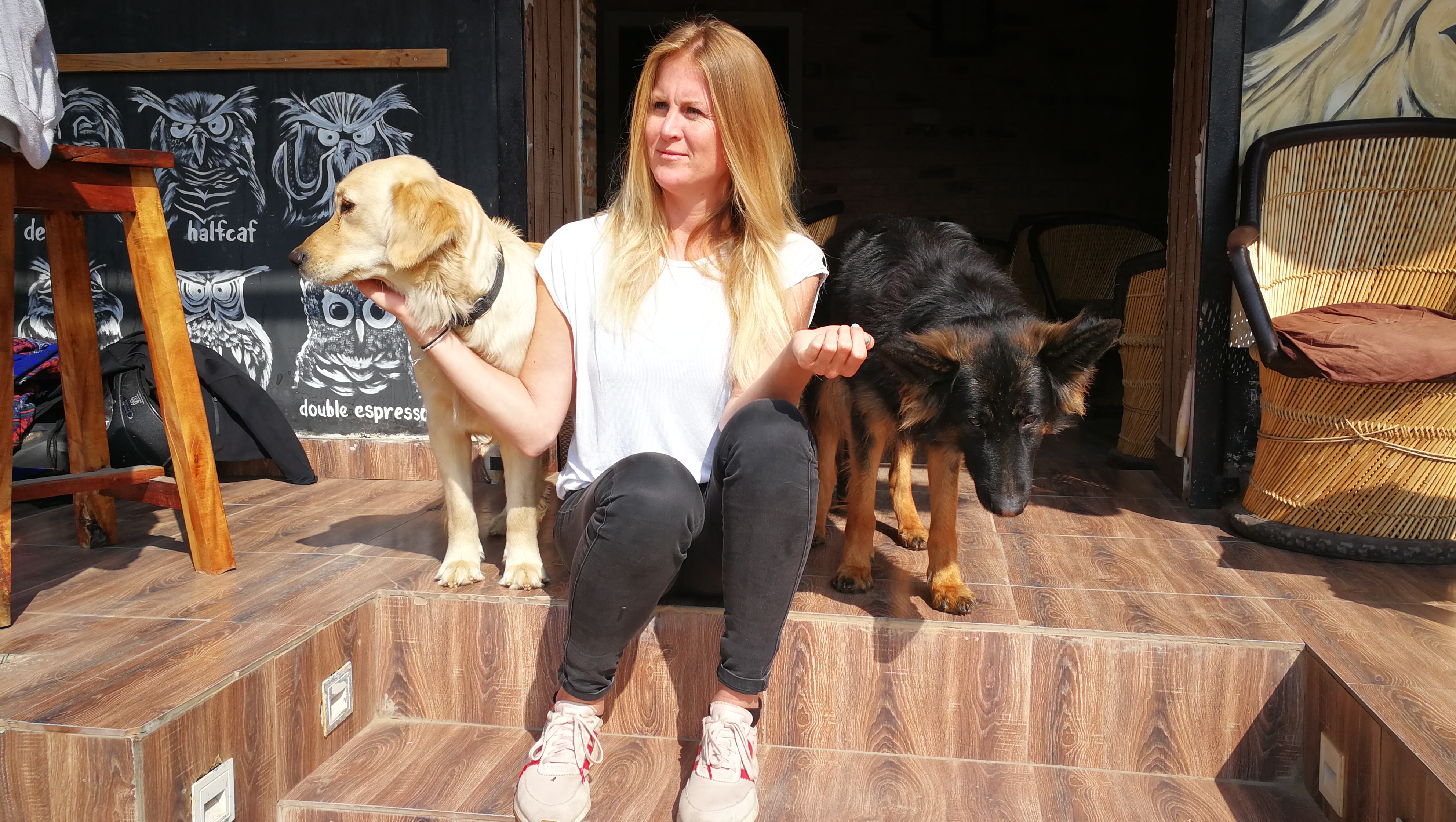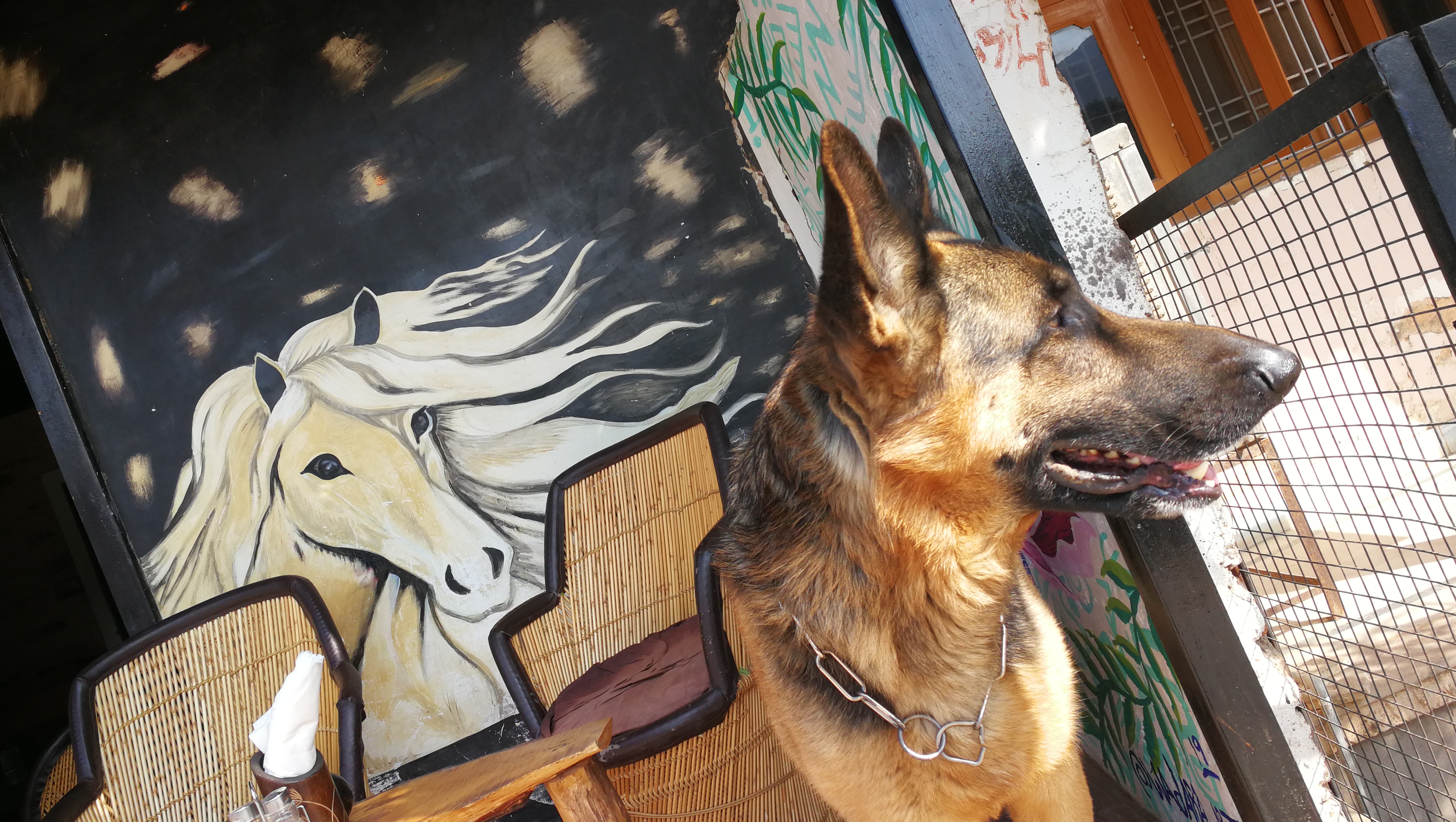 This little cafe is situated in the south of the city, just outside of town. Only a few spots in and outside. And a lot of dogs keeping you company!