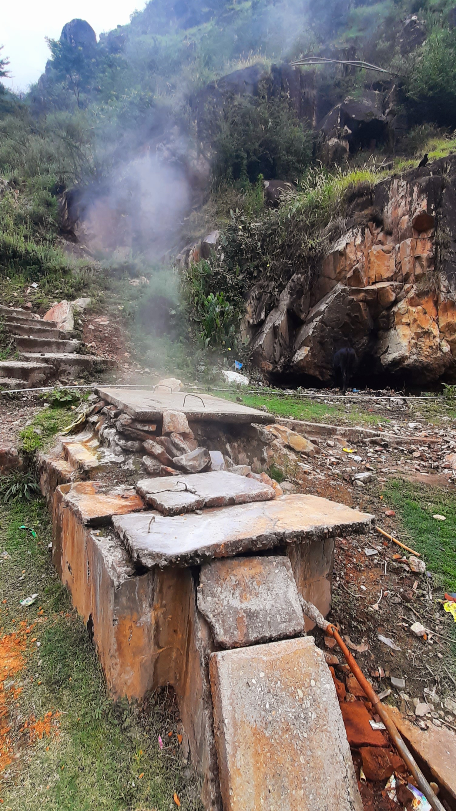 In this temple you also find the hotsprings, with temperatures rising up to 88 to 94 degrees Celsius. The water has a medicinal value for patients of rheumatism, gouts and several skin diseases. As you can see in the pictures, inside this temple the water is used to cook food (sachets with rice and chapatis).