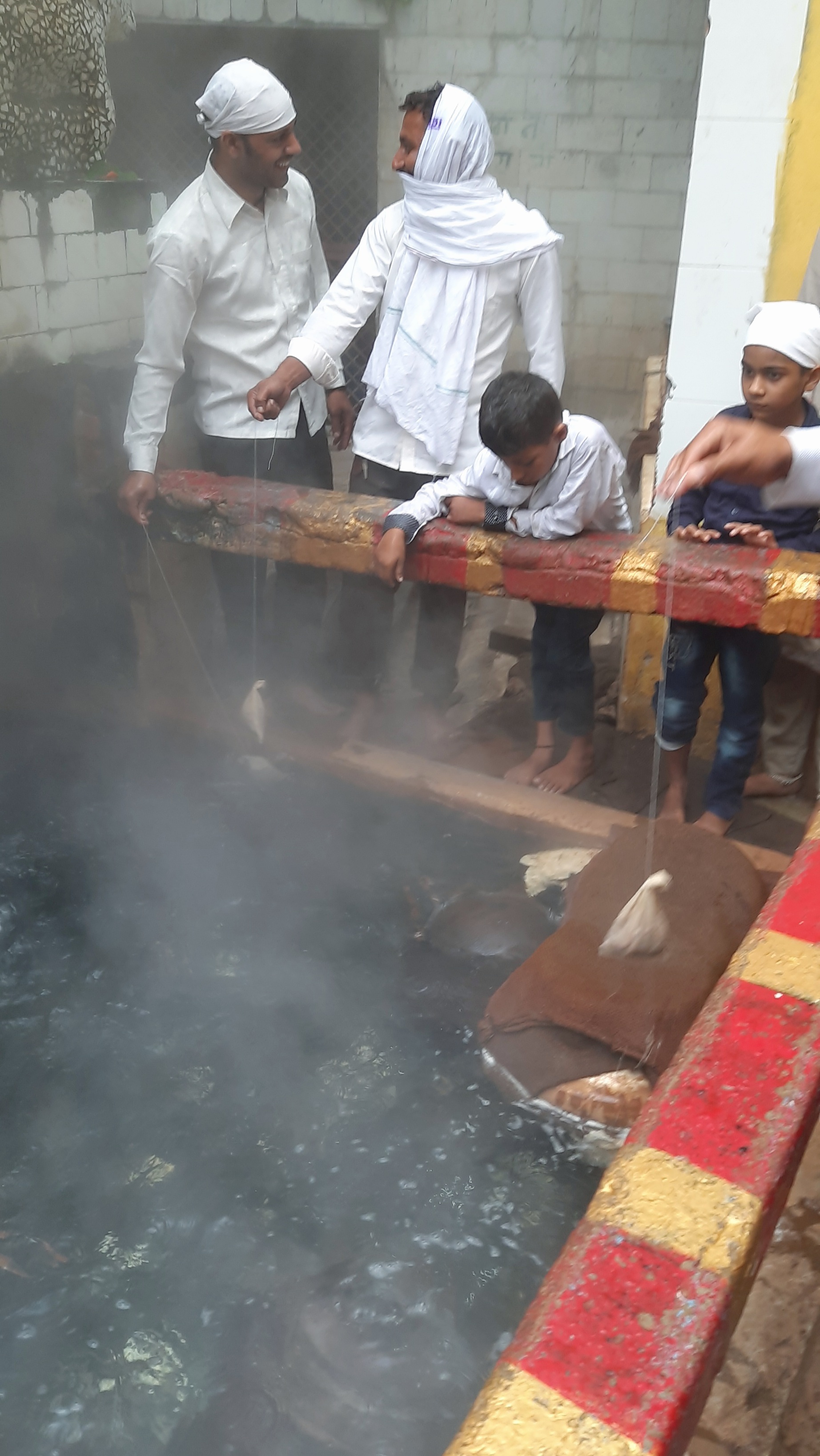 When visiting the temple you have 2 options: enter via the tunnel-like corridor from the small shopping labyrinth at one side, or over the bridge/ parking lot from the other side of the river. From this side you can first check out the hot water kund (reservoir) outside this most prominent place of worship for the Sikhs. Then cross the bridge, go inside the temple and visit the common dining area. Like other Sikh temples, here everyone is welcome to join for a free meal.