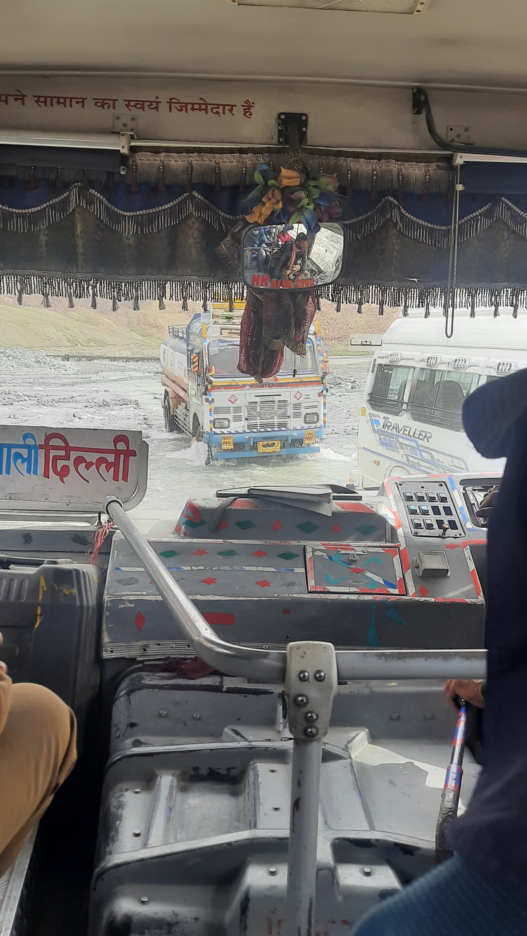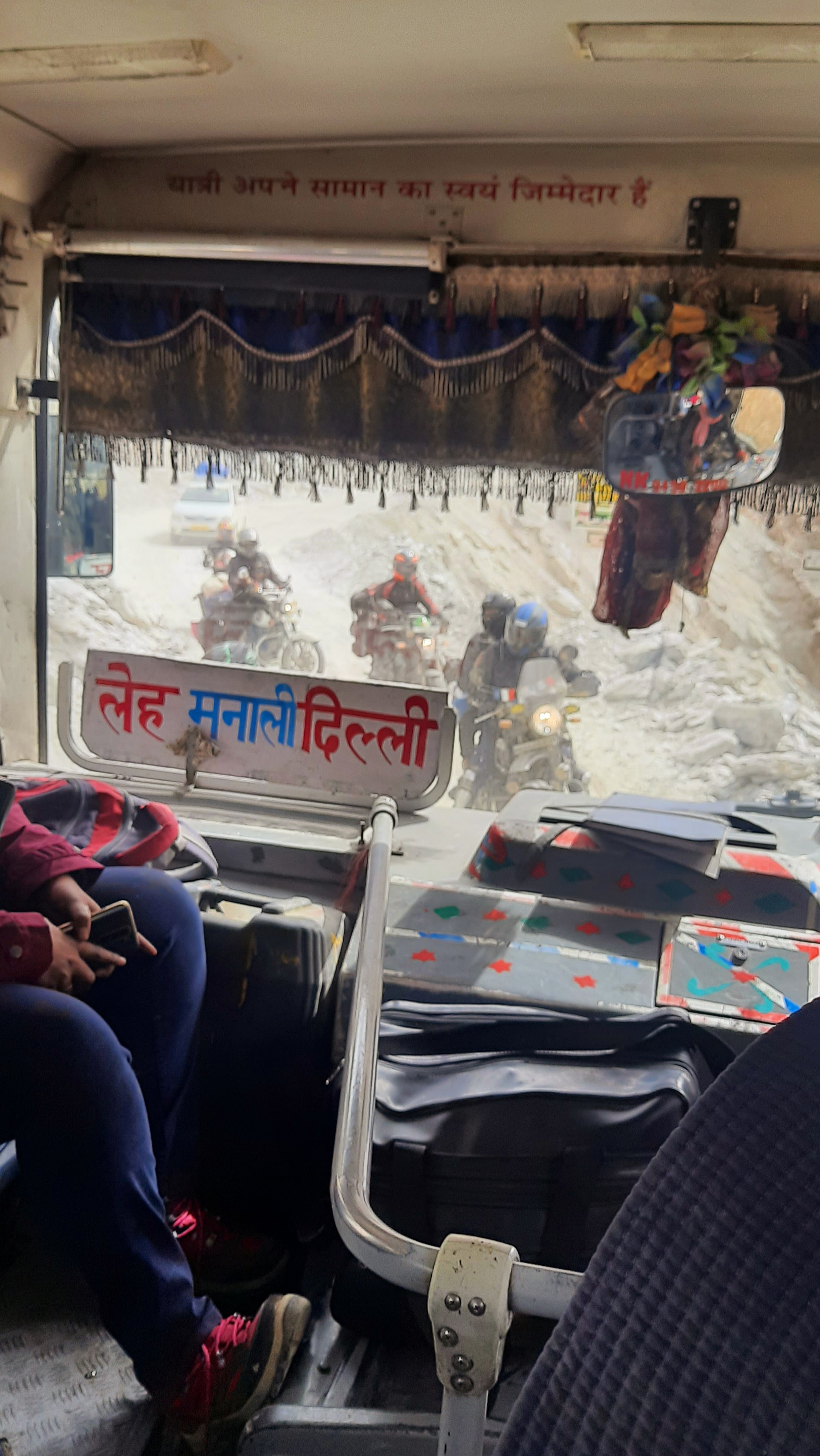 So, you have to be prepared, this bus ride is going to be a long one… Beforehand they said around 13 to 14 hours. But there’s always something going on on the road. So don’t be surprised to leave at 5 am and to not reach Leh around 9, 10 pm or even at midnight. Also, there is only one driver that drives the whole journey. Quite a challenge for him as well!
