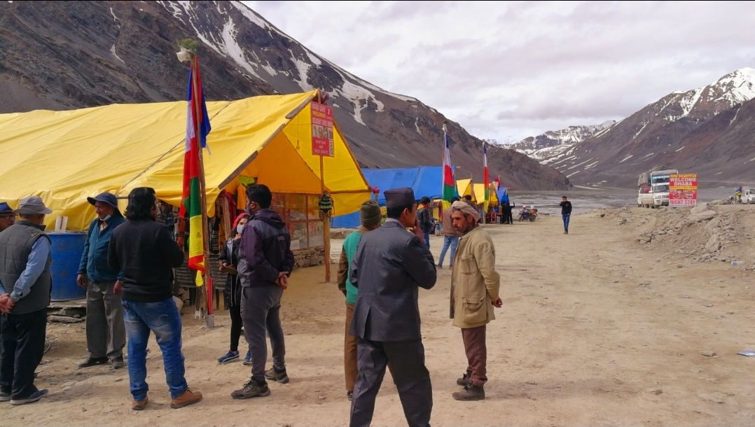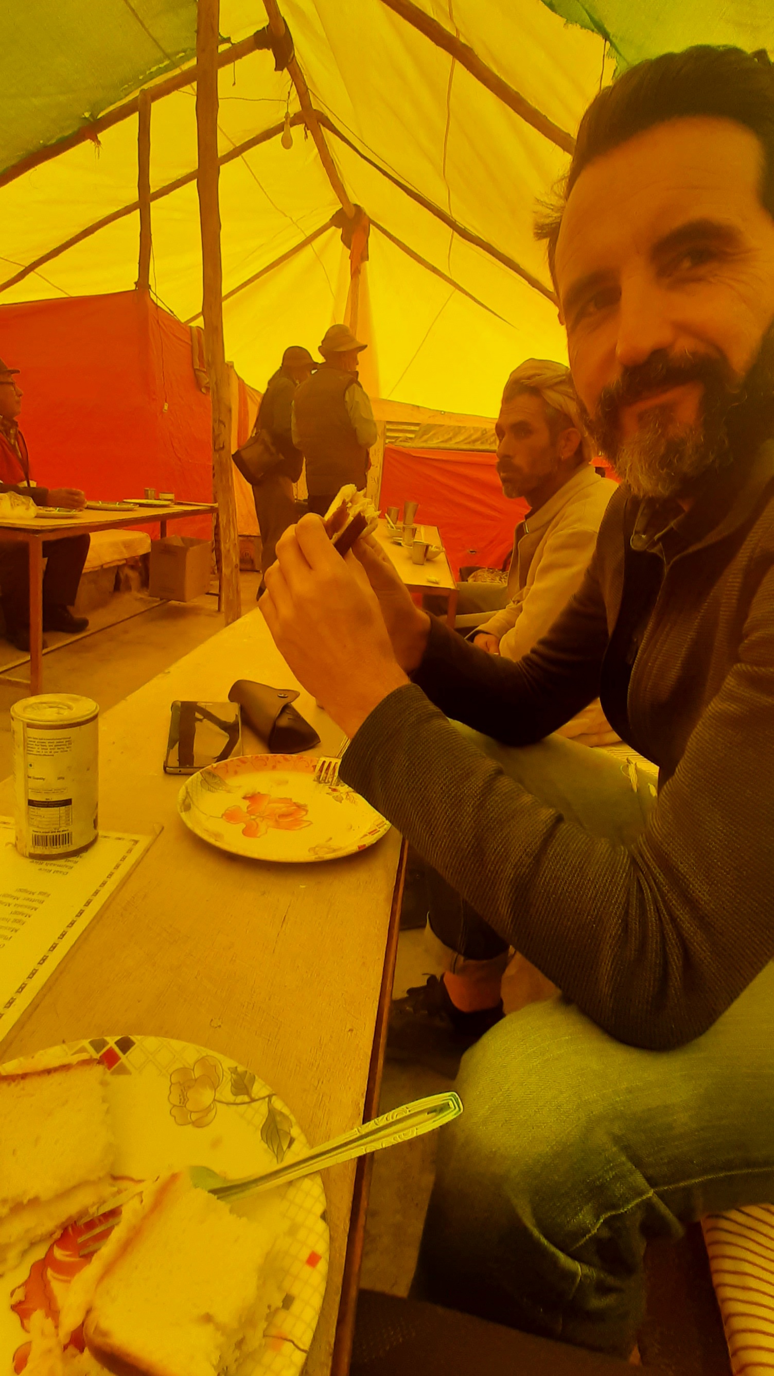 And what about breaks? The bus will stop at least 3 times. During our trip the first stop was around 8.30 am in Serchu, and it took around 20 minutes in which you can have breakfast in one of the big tents. Here you can get a chai and paratha or bread omelet, and there’s a small, improvised toilet facility (make sure to use it, since the next stop won’t be for another couple of hours). The second stop was in the afternoon – our stop around 3 pm – in Pang. Here you can have a veg thali for lunch.