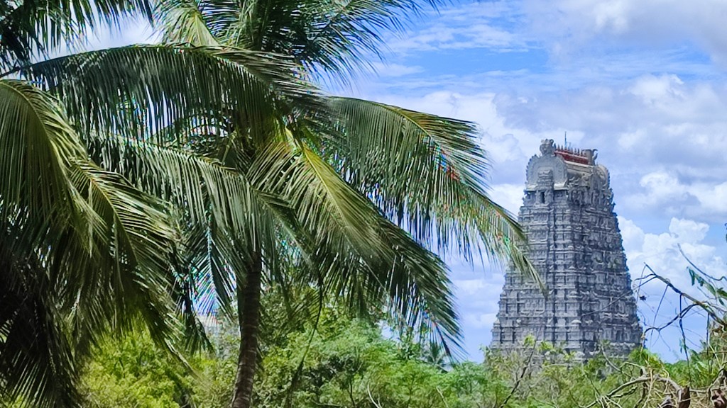 Since we’ve been traveling in India for 2,5 years now, we have already seen a lot of holy places. But the specs of this one – located on top of a hill, the accompanying view over the green plains of Tirukalukundram, 4 huge towers that you can see from a distance and all the elaborate, handmade decorations – made it definitely worth it, this temple tour in the south!