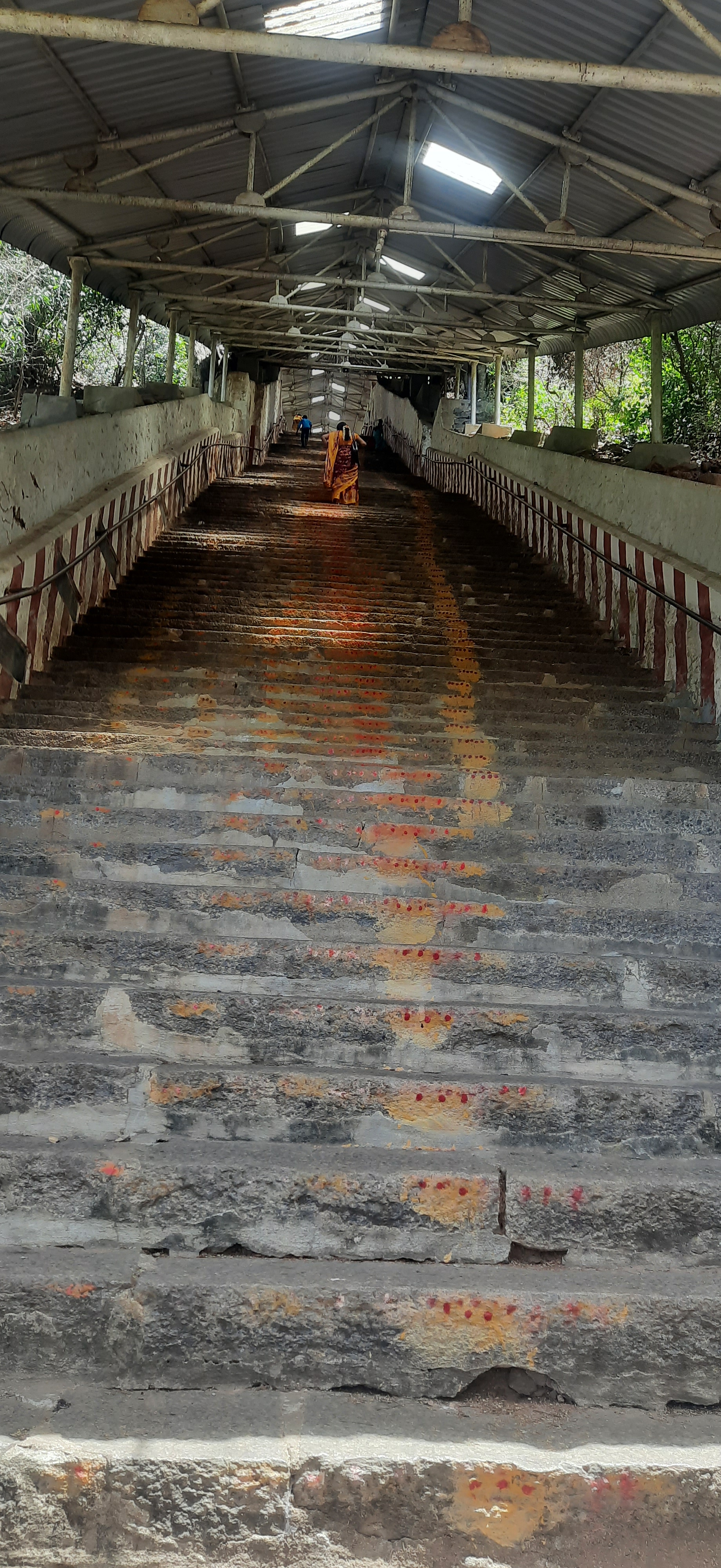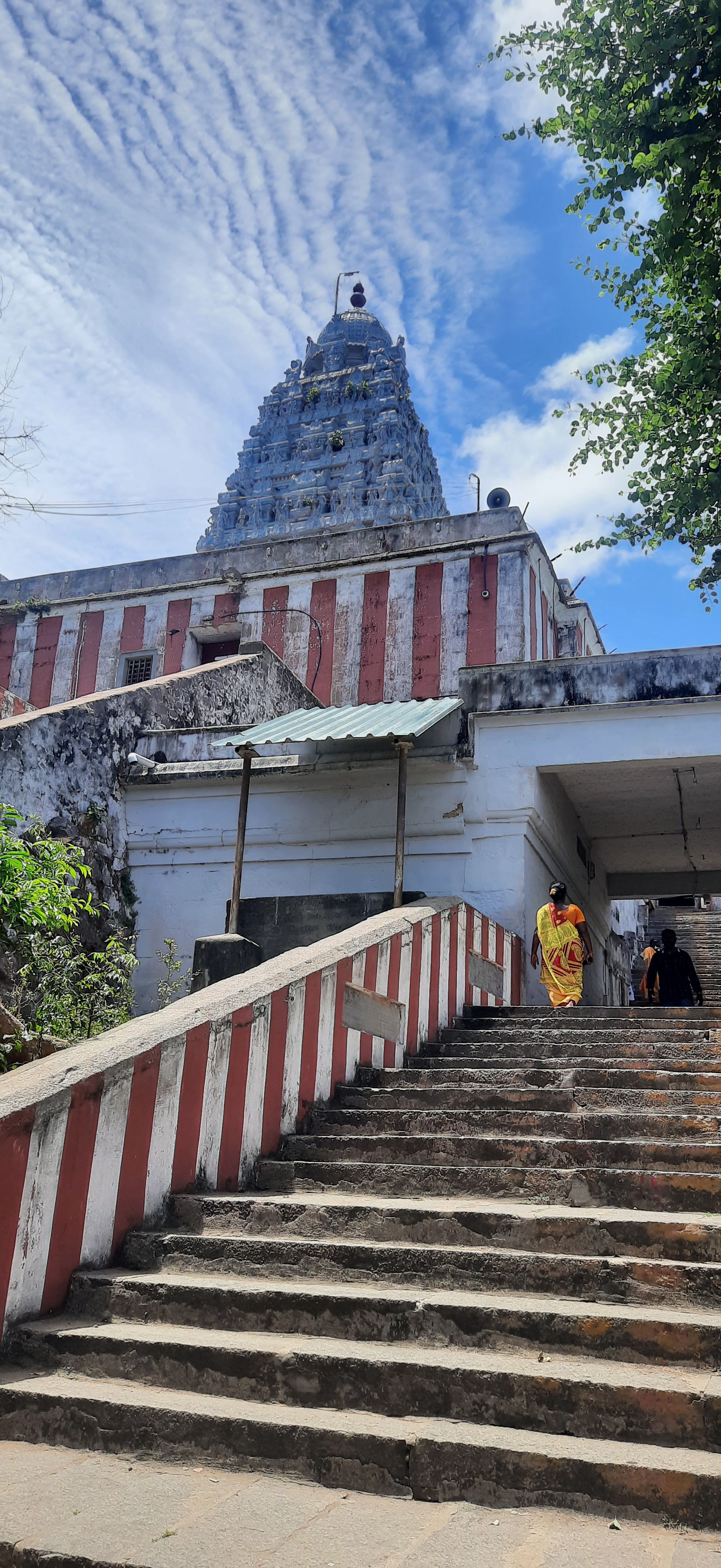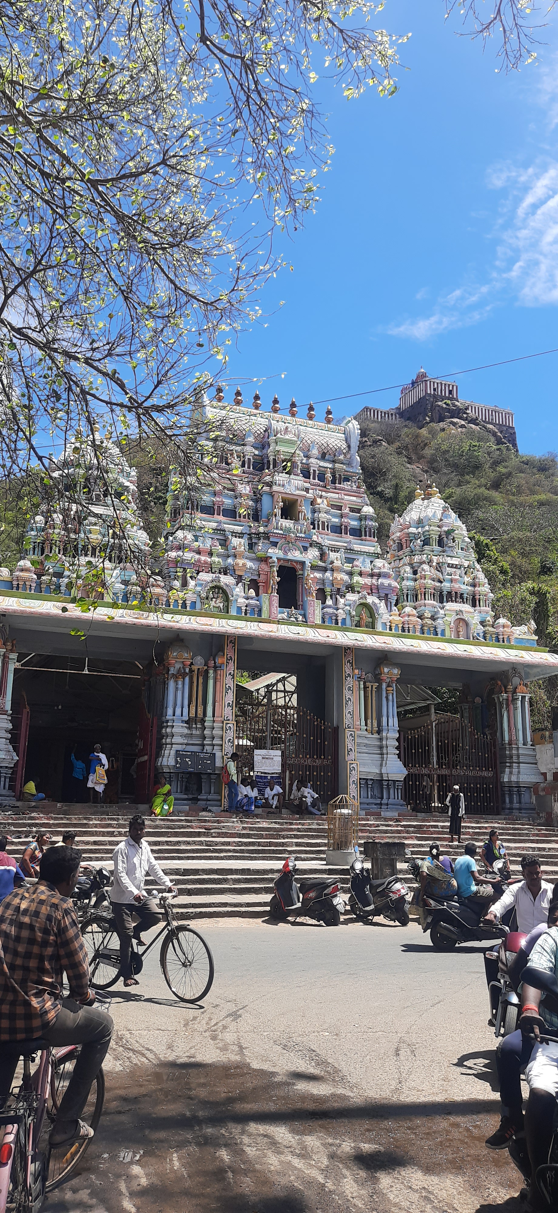 The complex consists of two parts: one at the top of the hill and the other at the foot. The first is dedicated to Lord Shiva (master of those Vedic Mountains) and the second to his wife, Parvati (named Thiripurasundari Amman in this southern part of India, Tamil Nadu).