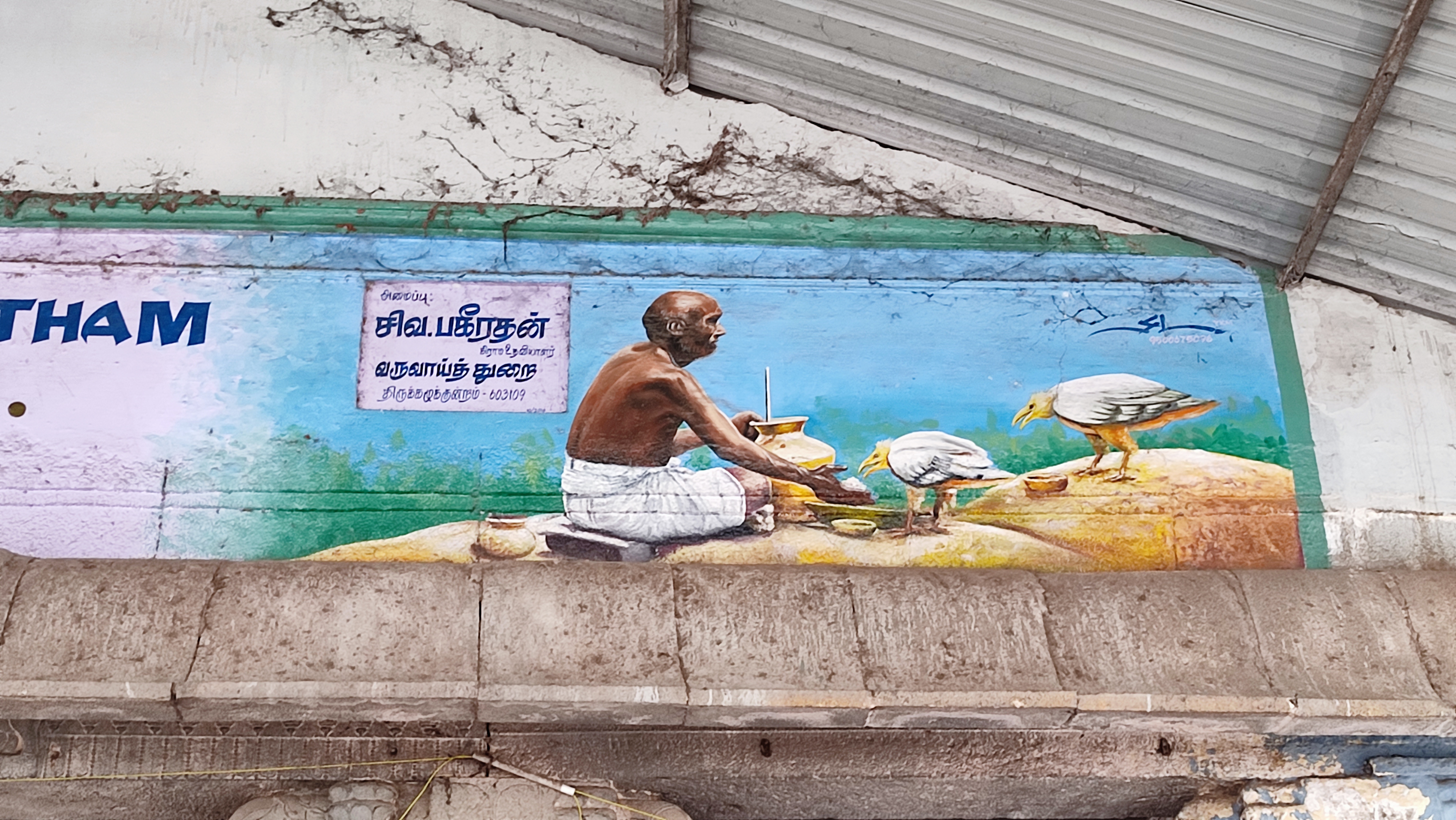 Thirukazhukundram and the disappearance of the eagles Nowadays, the town Thirukazhukundram comprises several small villages. The name consists of the 3 Tamil words thiru (respectful), kazhugu (eagle) and kundram (mountain). The story goes that a pair of birds - most likely Egyptian vultures - used to visit the place for centuries. These birds were traditionally fed by the temple priests. They arrived every day before noon and they were fed with offerings made from sweet rice (rice mixed with wheat, ghee (clarified butter) and sugar).When one day the birds did not appear on their regular spot, this disappointing event was blamed on the apparent presence of ‘sinners’ among the present spectators. The myth describes that the sacred eagles represent the sons of Lord Brahma. They were punished and cursed by Shiva, to be born on earth as eagles. To attain moksha (released from the cycle of rebirth) and regain their original forms, they had to worship the deity of this temple, Shiva. (Source: Thirukazhukundram.com)