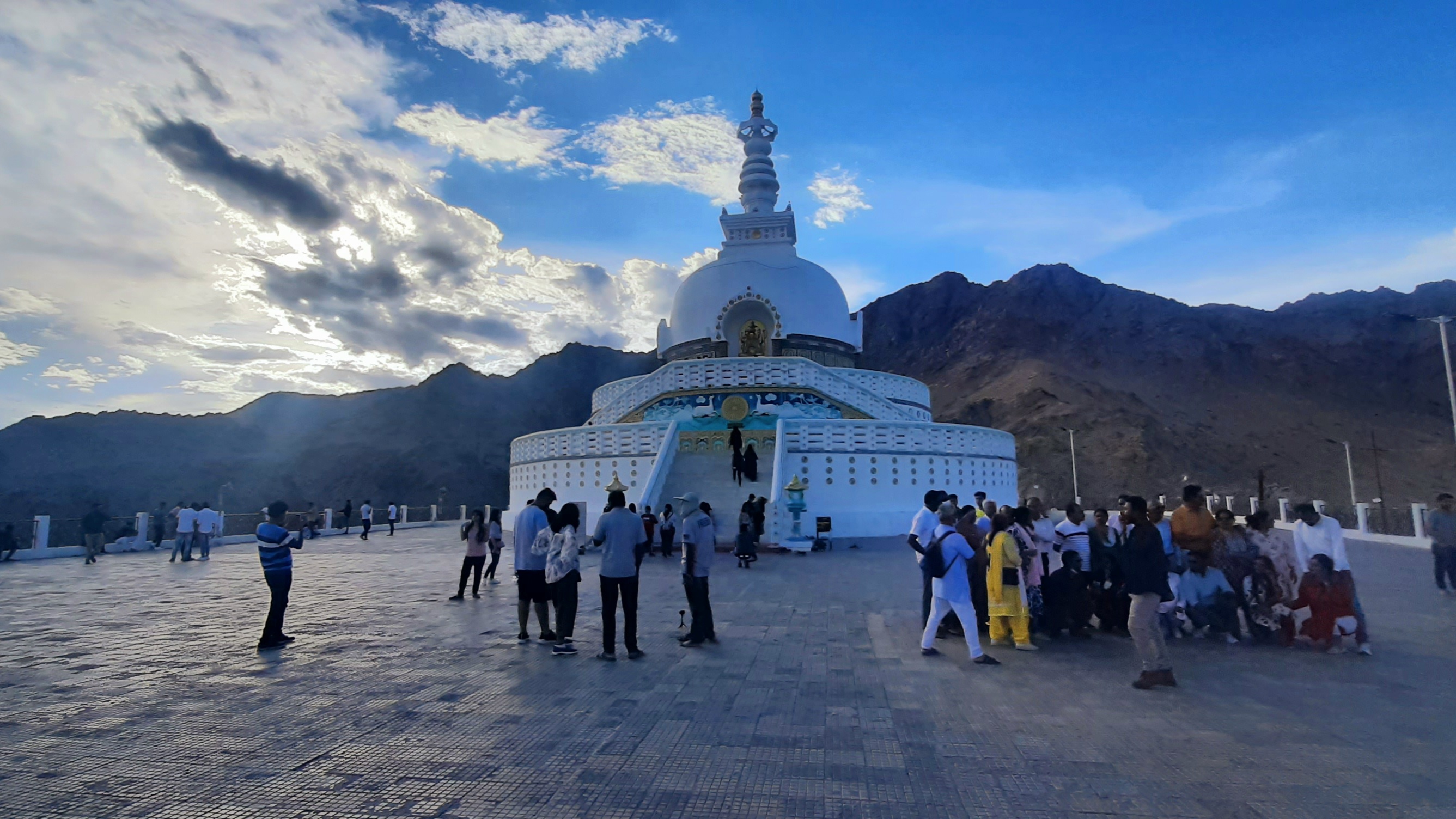 - Climbing up to the Shanti Stupa