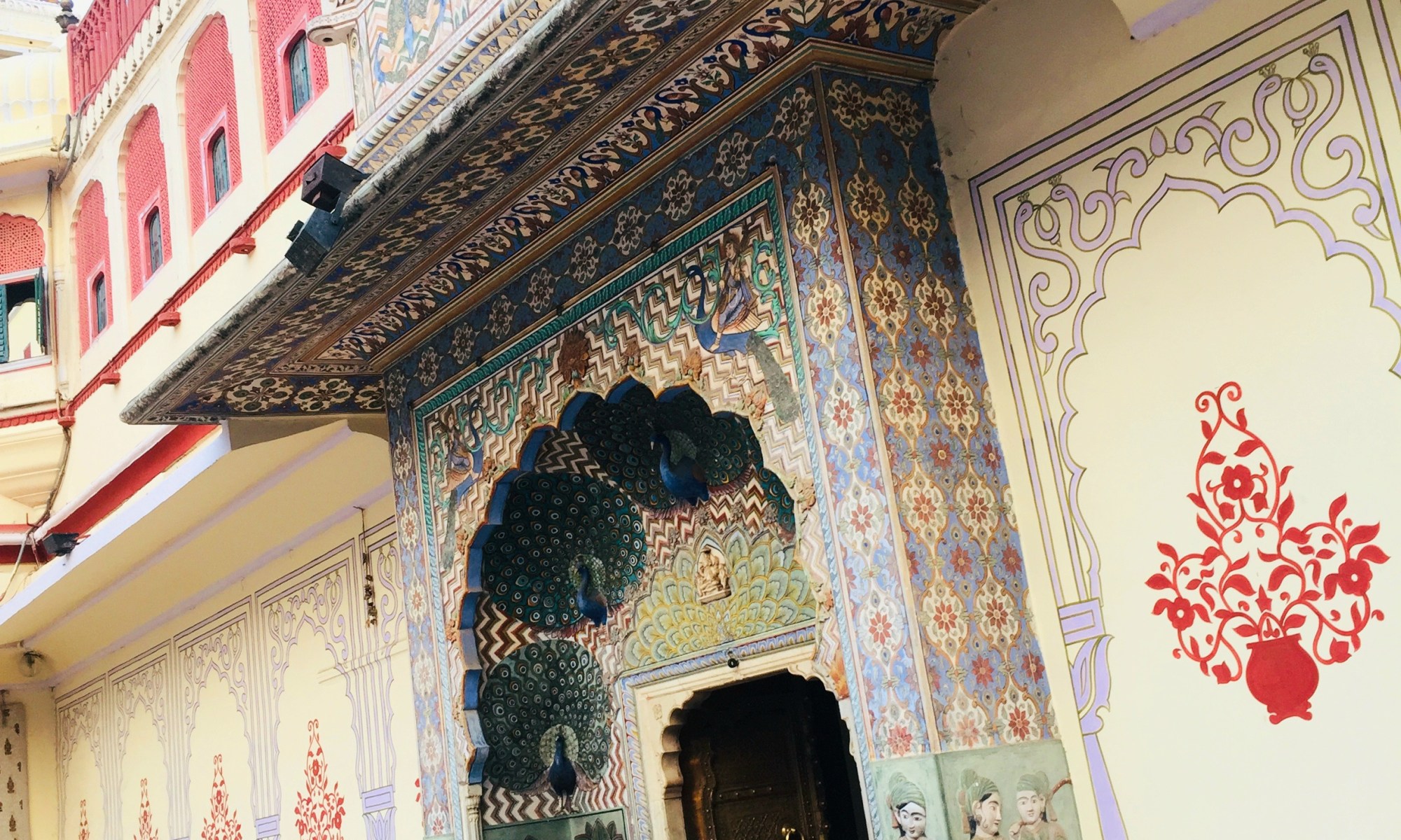 Around the corner of the Wind Palace and in the middle of of city.. you find the enormous complex of the City Palace. Beautifully decorated and still the home of the royal family of Jaipur.